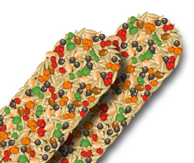 A delicious seed based snack for canaries, enriched with dehydrated fruit: apple, orange, cherry, plum.