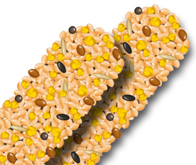 A seed based snack for parakeets, enriched with the noble proteins of eggs and the energy of honey.
