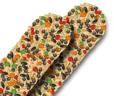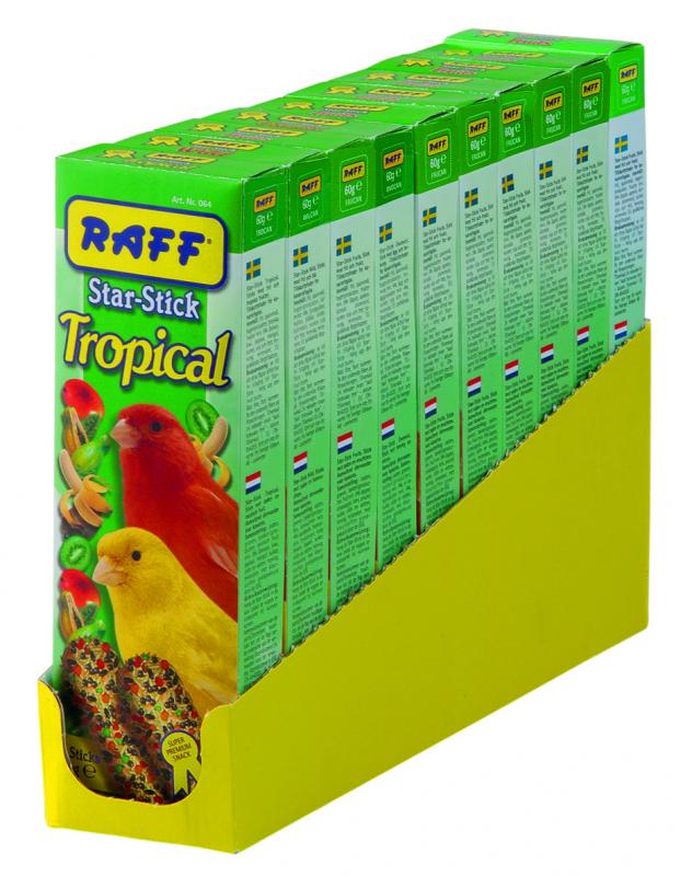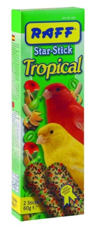 A special seed based snack for canaries, enriched with dehydrated tropical fruit: banana, kiwi, papaya, mango.